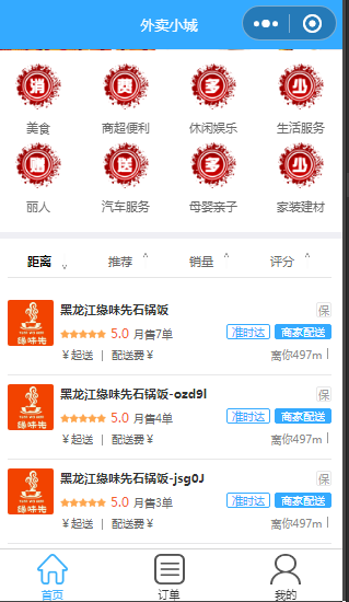 扫码点餐堂食点单外卖配送餐饮小程序系统