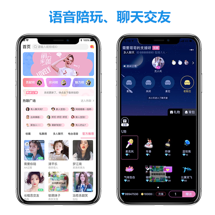 1、语音聊天室:应用于音乐电台、游戏组队开黑等多人语音聊天场景