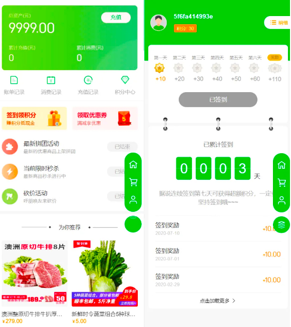 促销有利于提高用户的回购率;小程序生鲜商城通过营销活动的宣传推广,实现前期的引流和后期的营销,促进转化。商家可以通过满减、常规促销活动、拼团、砍价、积分兑换等营销活动,达到引流转化的目的,加深用户印象。