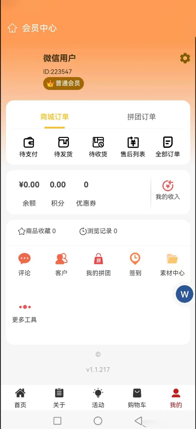 登陆注册之后进入个人中心界面,从内容重要性采分成了上下两部分,即收益性区域和服务性区减。