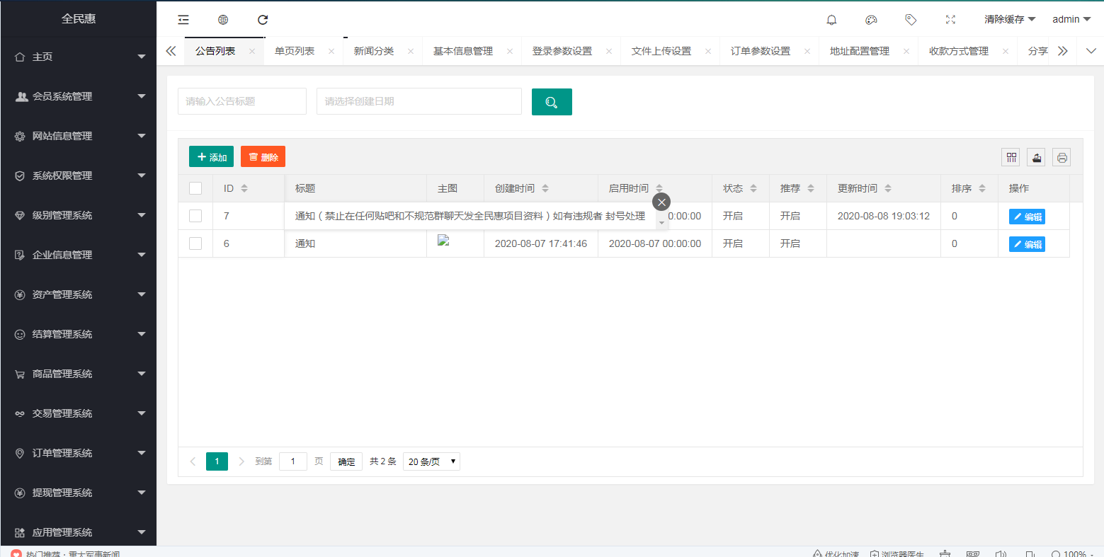 后台登录地址 域名/admin.php 账号admin 密码 123456