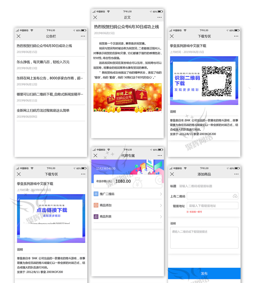 扫码推广类公众号。 该公众号是一款扫码推广产品的公众号,代理商发布二维码或者链接,用户可以购买并下载相关内容。 首页规划有关注公众号、banner、公告栏、下载专区、广告区域、推广码区域、代理商窗口。 资源下载此资源下载价格为199人民币立即购买