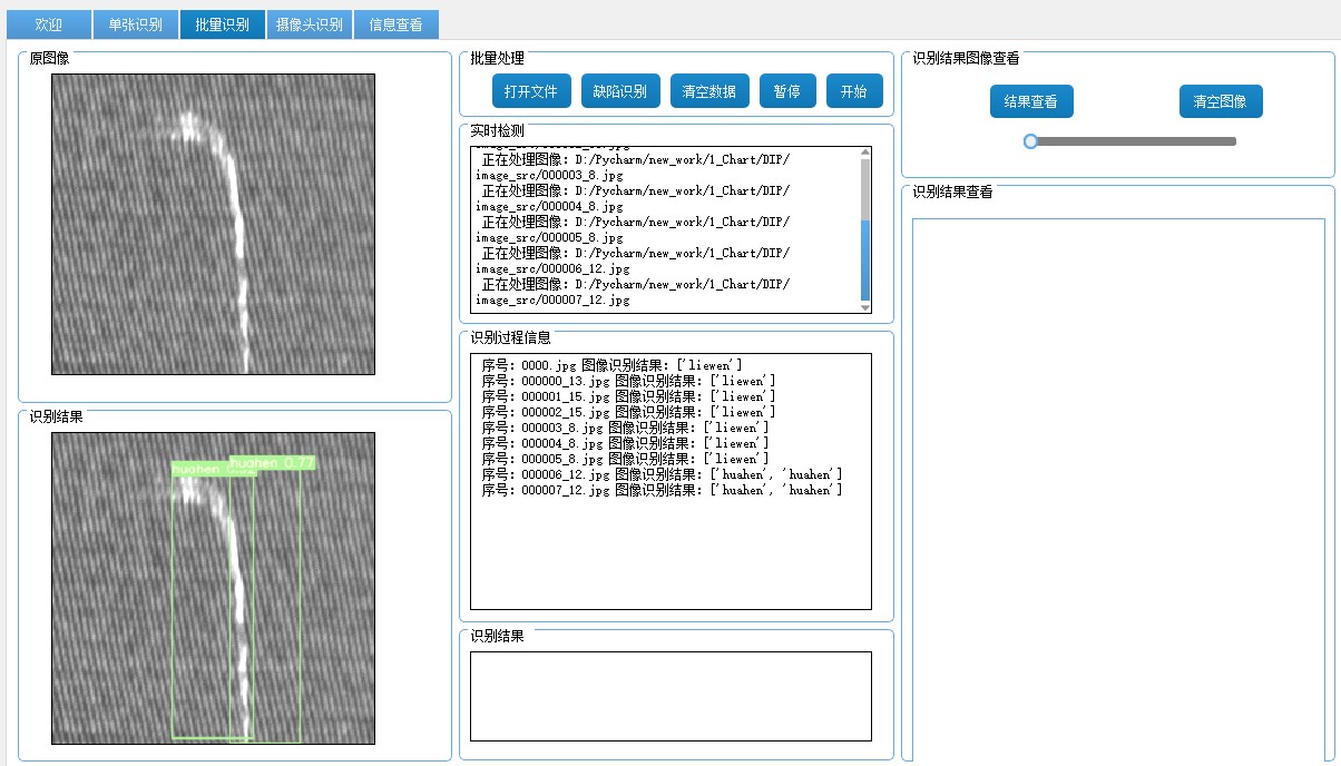 支持摄像头实时识别,结果查看功能。 python pyqt5
