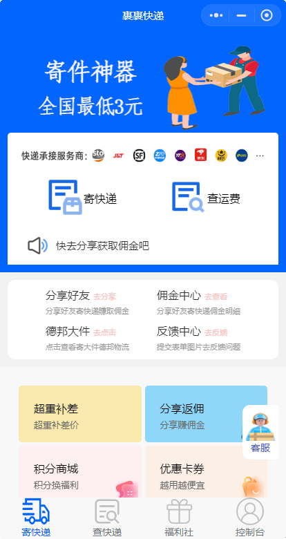 快递小程序收益: