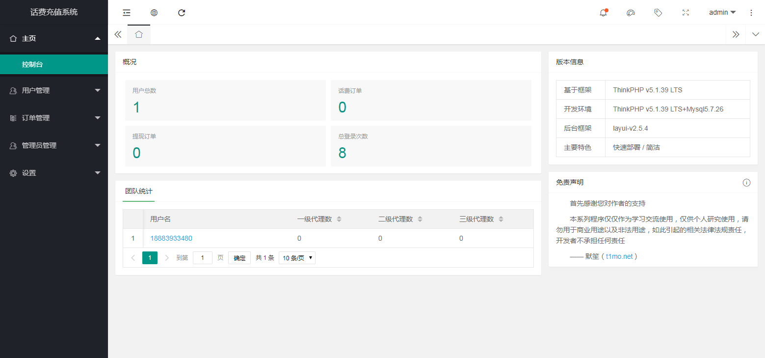 话费充值系统详情: 前端首页,充值话费,提现,订单查看,推广活动等, 推广赚钱。 我的。 后台详情: 主页 用户管理 订单管理 管理员管理 设置 本系统源码是开源源码,可二开,添加功能等。 需要演示站老板请联系客服,谢谢! 资源下载此资源下载价格为199人民币立即购买
