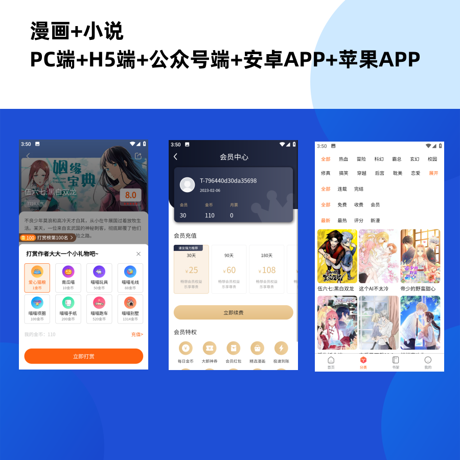 3. 漫画喂食作者、投月票、会员章节、亻寸费章节