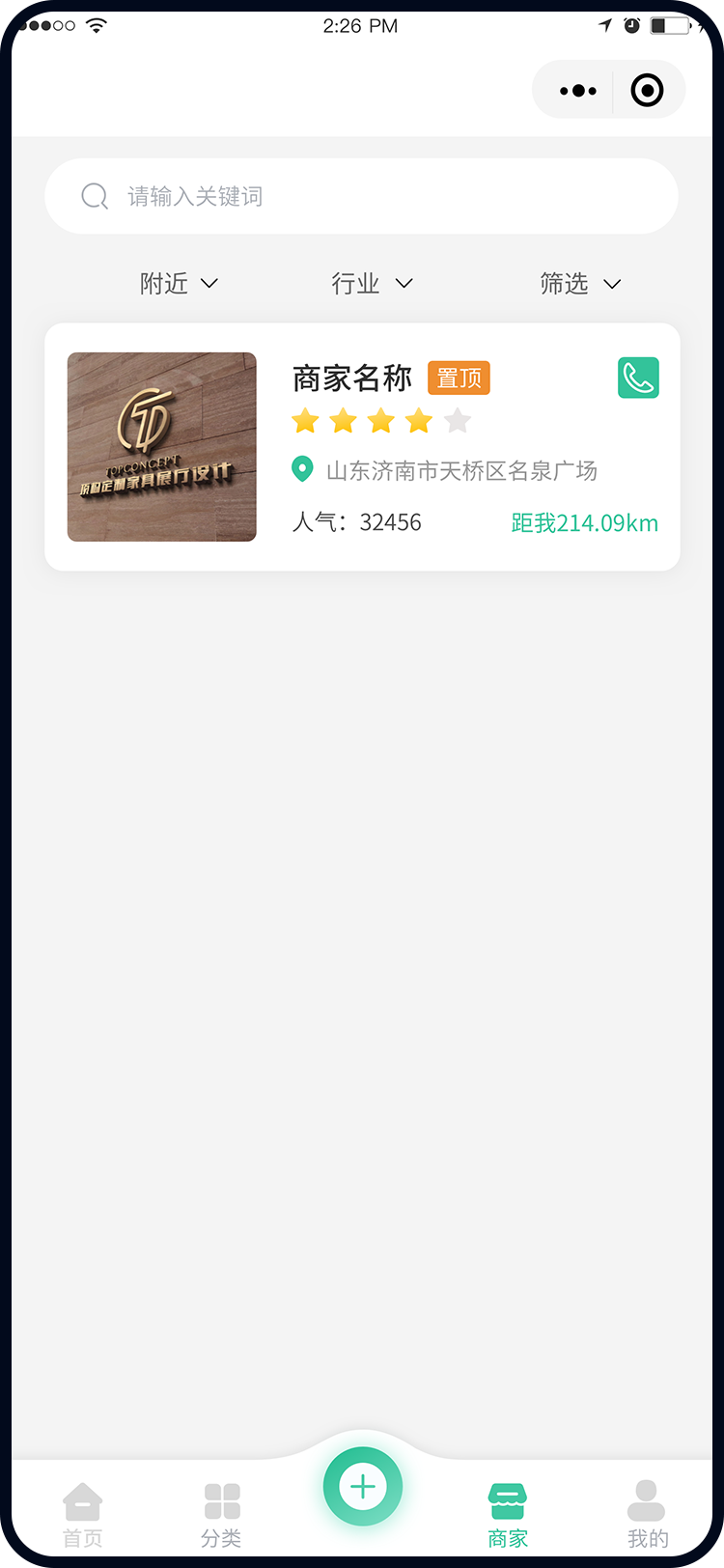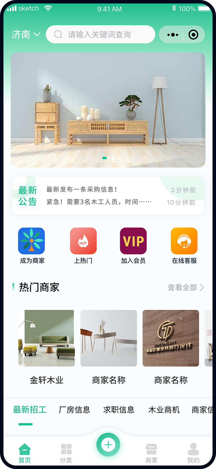 三,功能菜单:首页、分类、发布,商家入驻、我的。