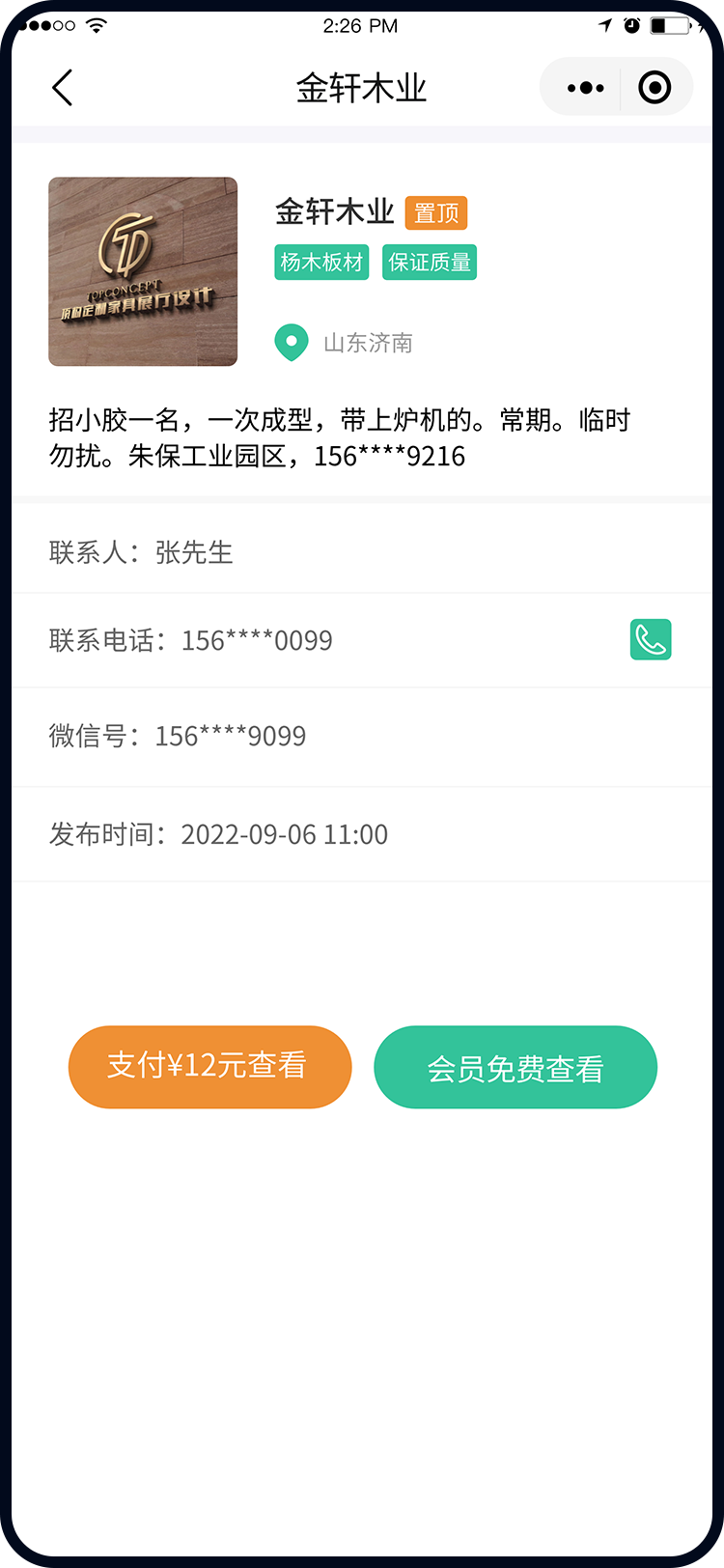 3、成为会员按钮,支付10元(参数),后台可以设置收费金额,自动升级为会员,会员权益:可以查看30天内商机,