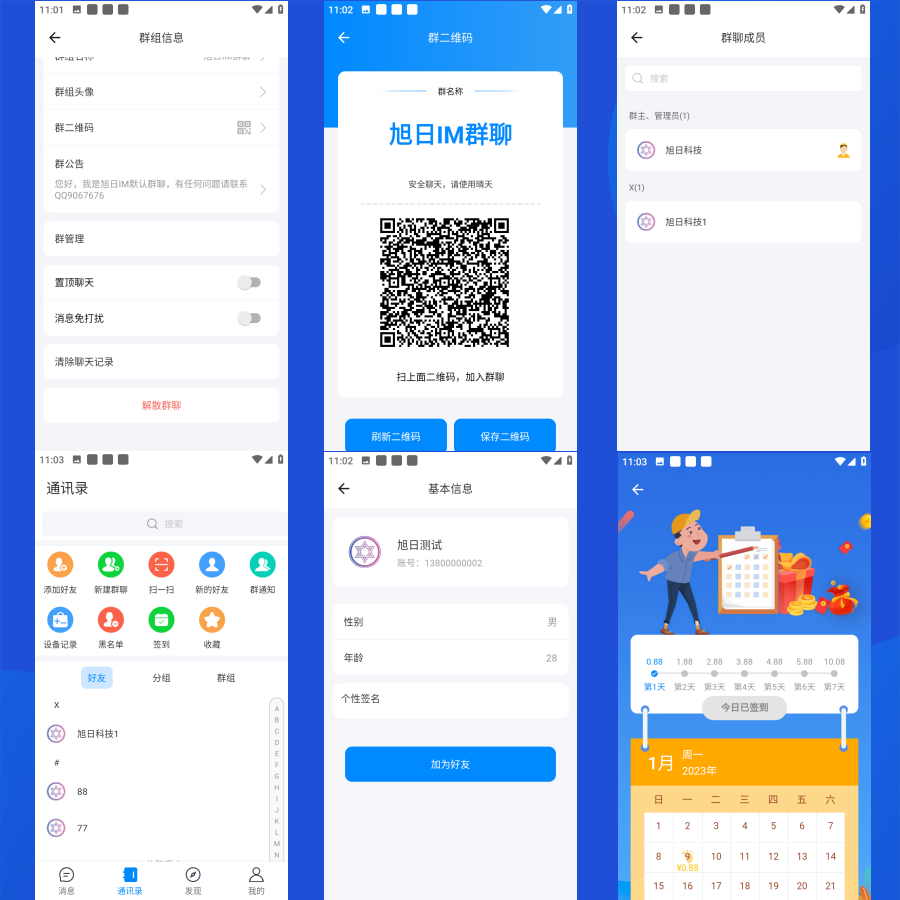 群聊功能:单人/全员禁言、禁止互加,群管理