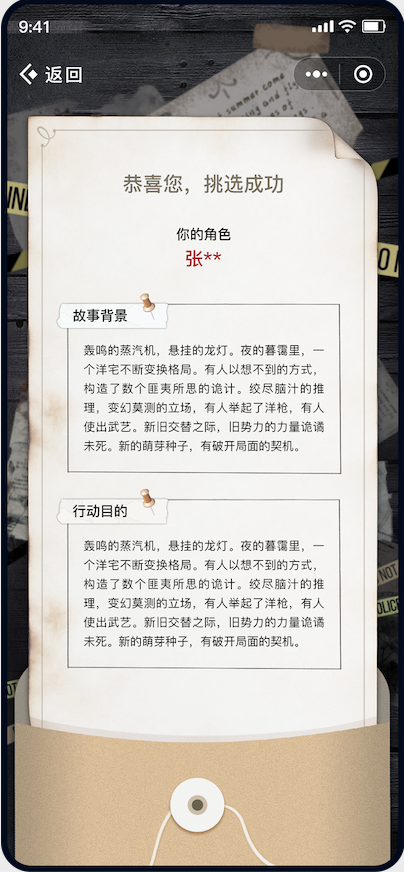 故事背景:您的角色为***,故事背景为***,由后台上传。