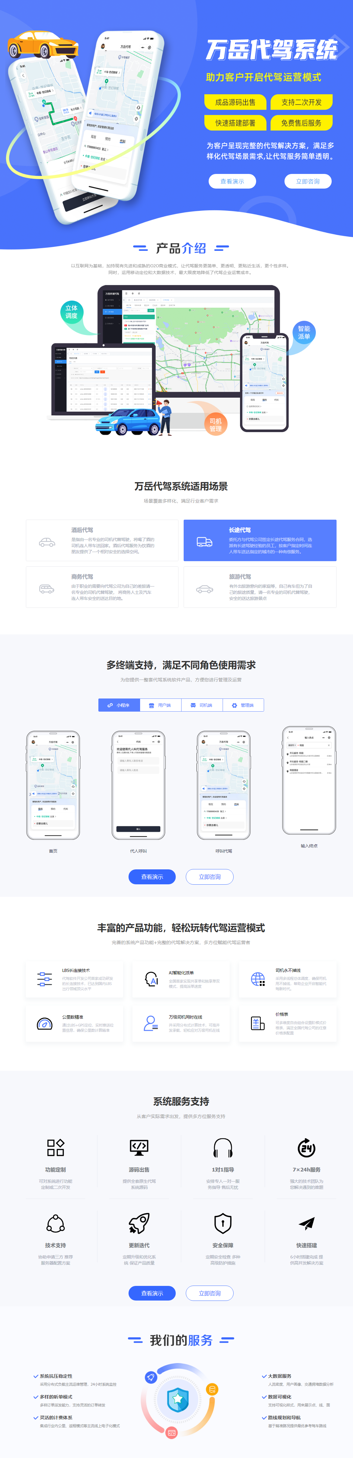 万岳代驾系统,提供全套互联网+代驾解决方案,满足客户、司机的所有需求。线上线下结合,助力运营方打造属于自己的专属代驾平台。