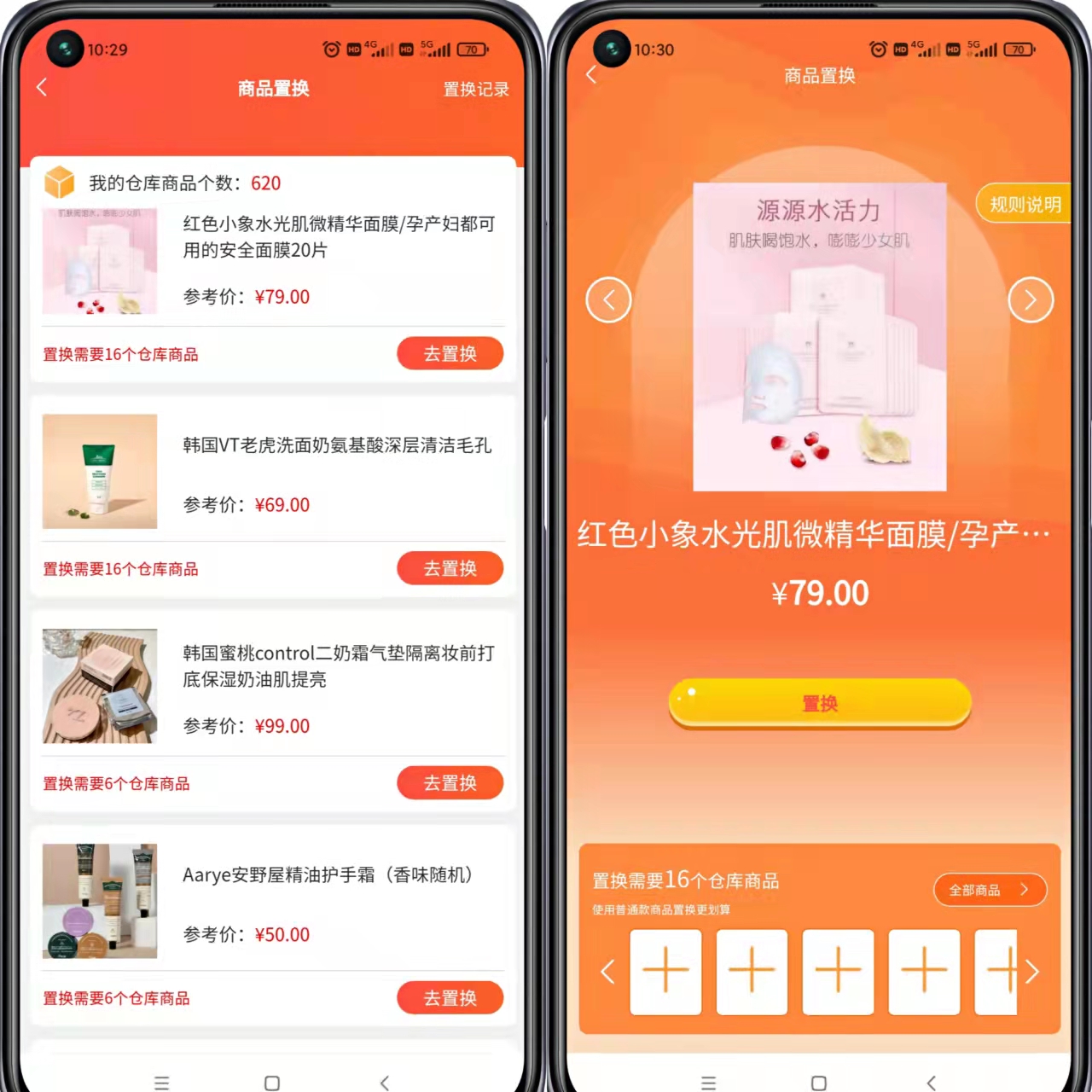 商品置换/(只有选择商品价值大于等于该商品才能进行置换)