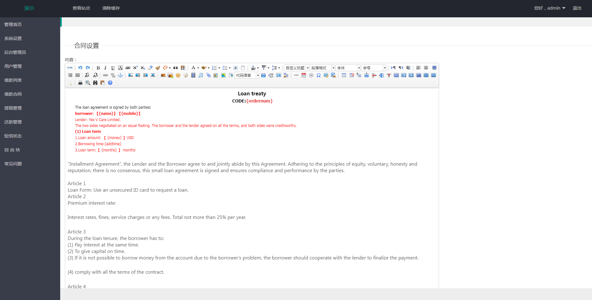 2023中英文p2p网贷借贷、小额贷款带签名合同源码