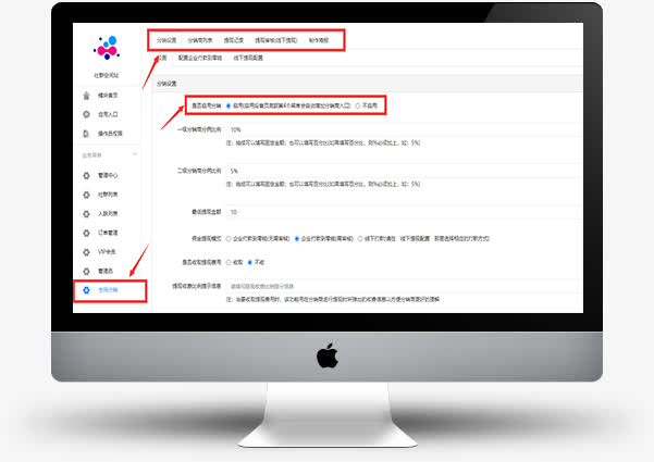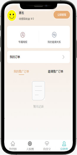 分销功能:用户拉新用户可以获取下级,两级分销逻辑。可以配置一级两级的分佣比例,不同级别可以获取一定分销比例的返佣。还可以配置提现次数,金额限制,是否收取手续费。