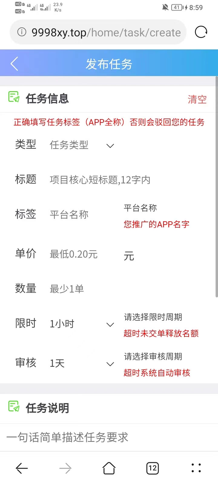 7、顾主任务发布会出现时间限制,请求超时不审批便会全自动审核通过,提成进到客户账号中,每日任务可顶置,能够 付钱顶置,按日算