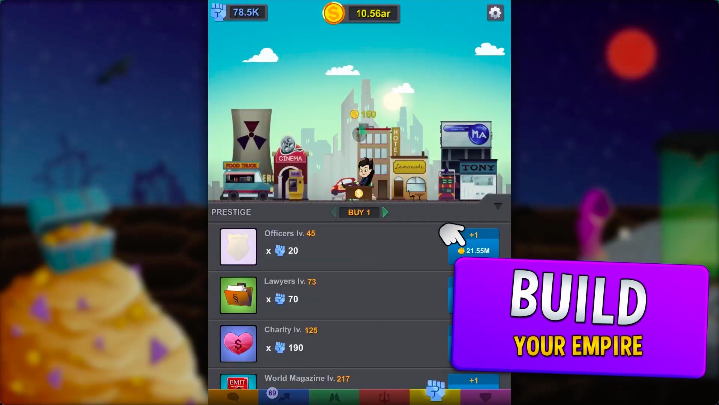 服务柠檬水赚第一笔钱,投资公司,成为亿万富翁之王。发现更多资本主义的秘密来赚更多的钱。提高你的声望,在你的职业生涯中取得进步,成为一个拥有巨大财富的富有的资本主义大亨,总有一天,光明会会给你一个加入他们的机会。