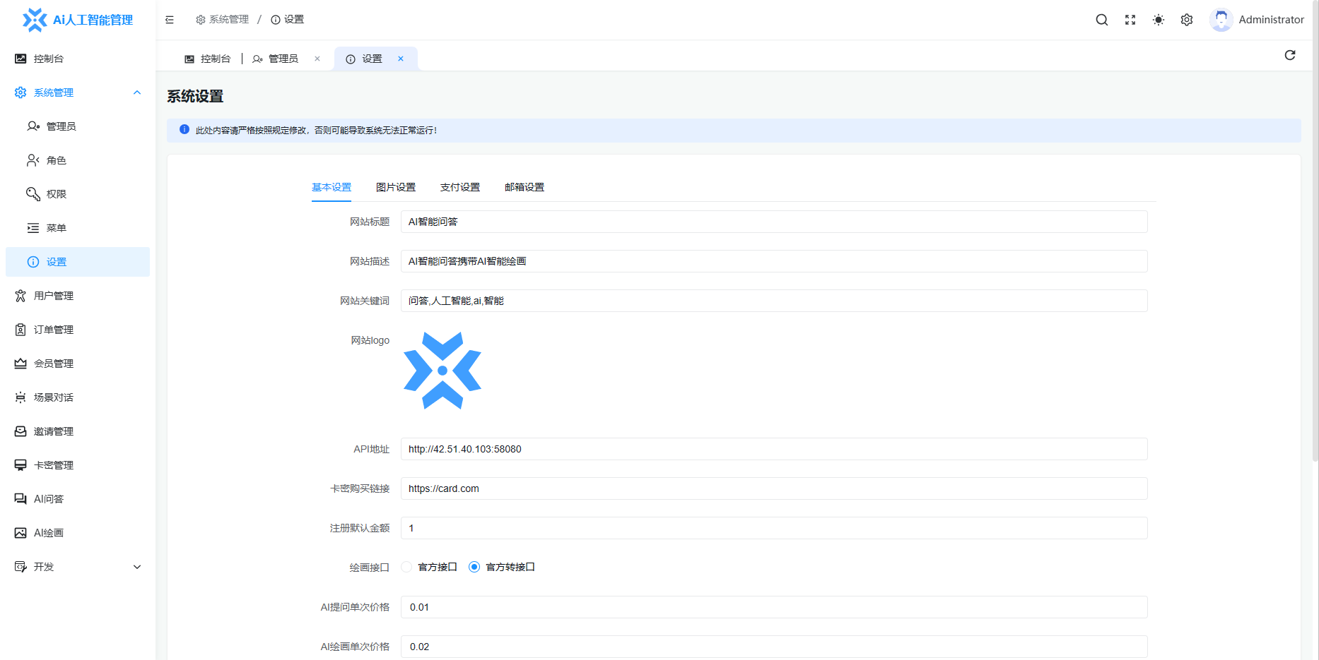 ChatGPT Ai机器人 商业程序, 使用chatgpt官方3.5接口,可问答,可绘图,自带支付宝,微信,银联收款接口,自带阿里云OSS接口,可生成卡密,系统成熟无bug,可用于运营。
