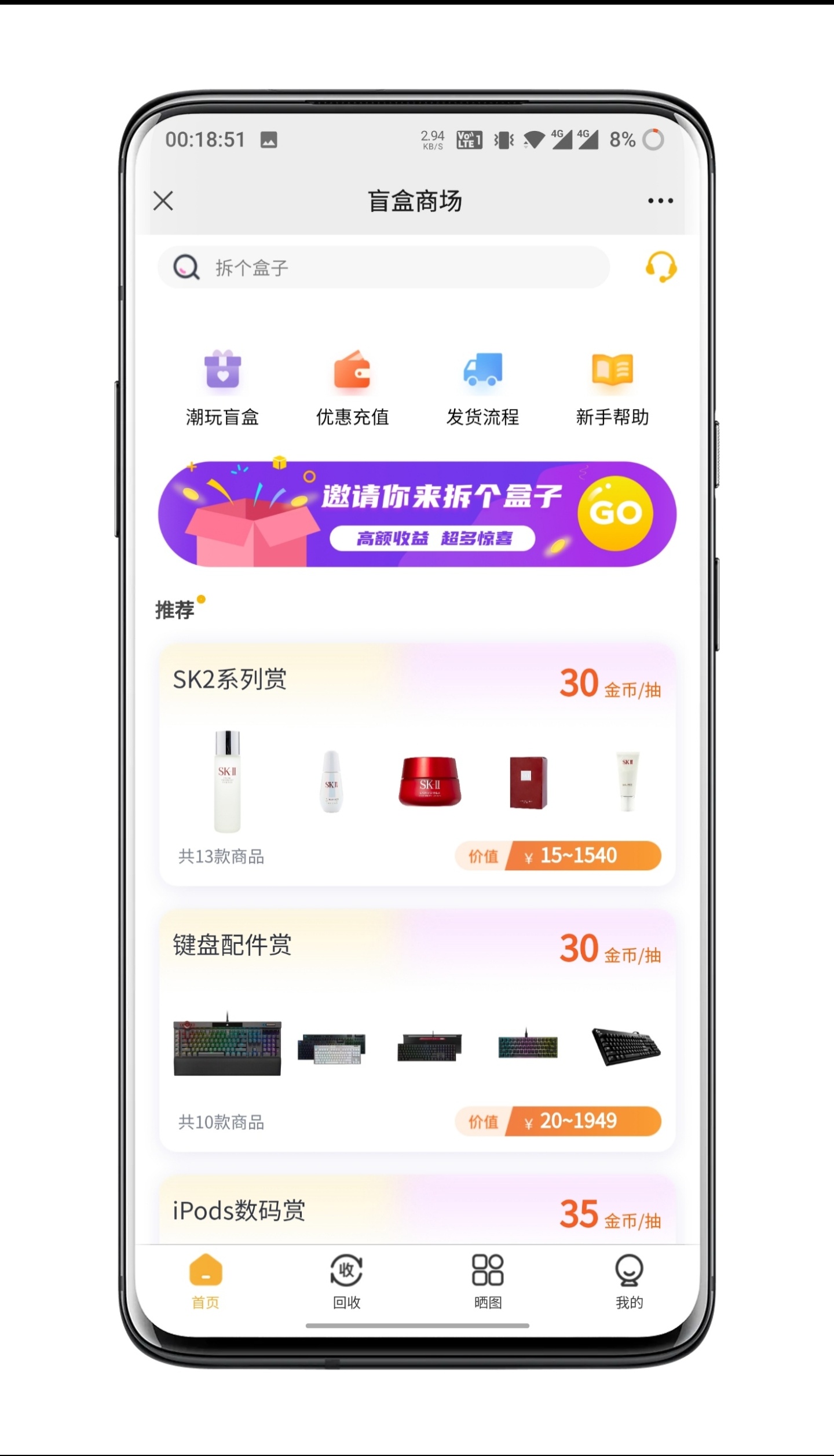功能点:炫酷的盲盒视觉体验、灵活的概率设置、反悔卡自带推广能力、盲盒+带货新玩法、会员分销功能、产品分销功能、带货分销功能、多盒连开、积分商城兑换等等。