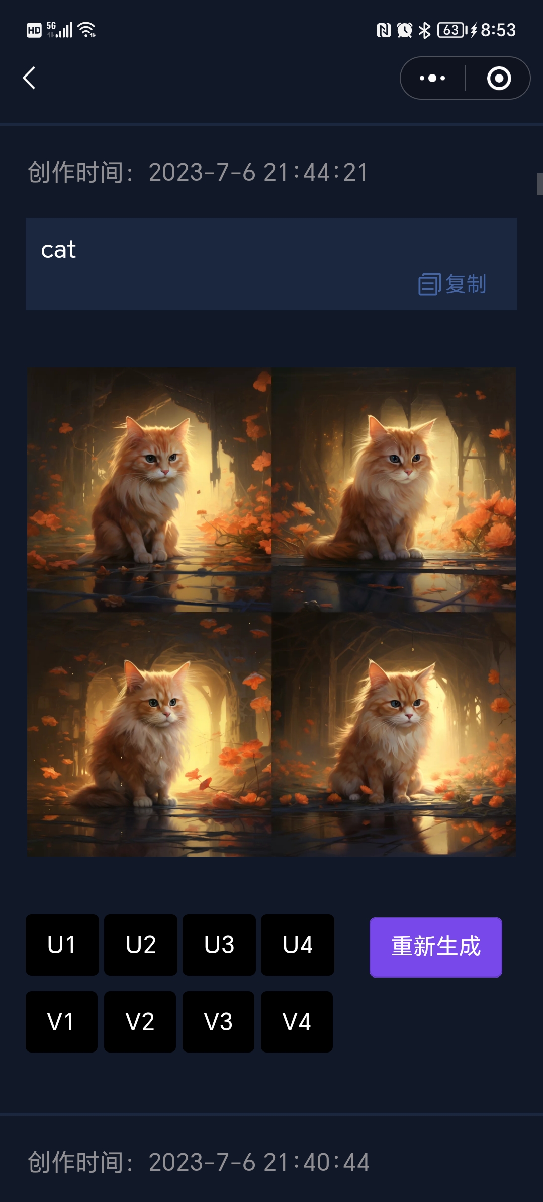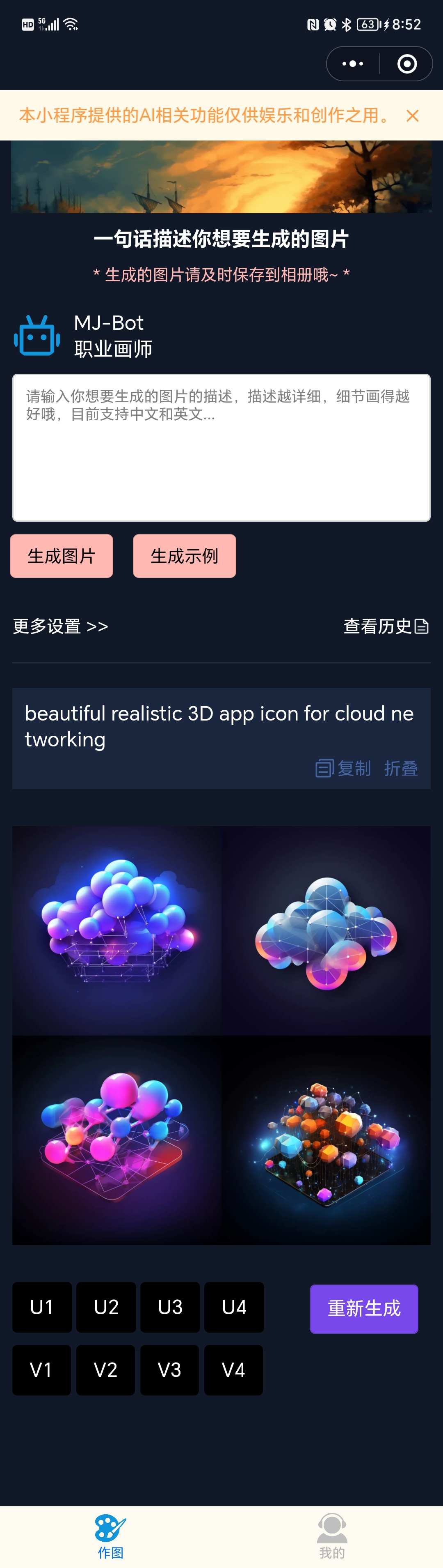 - 生成的图片支持继续进行 U/V/Reset 等操作