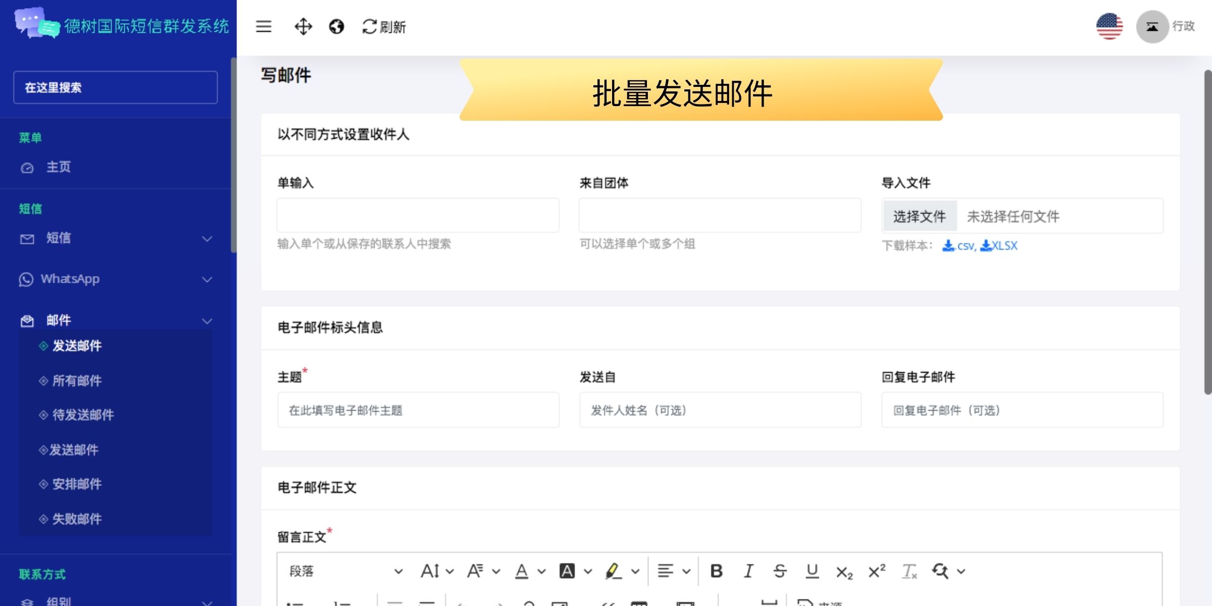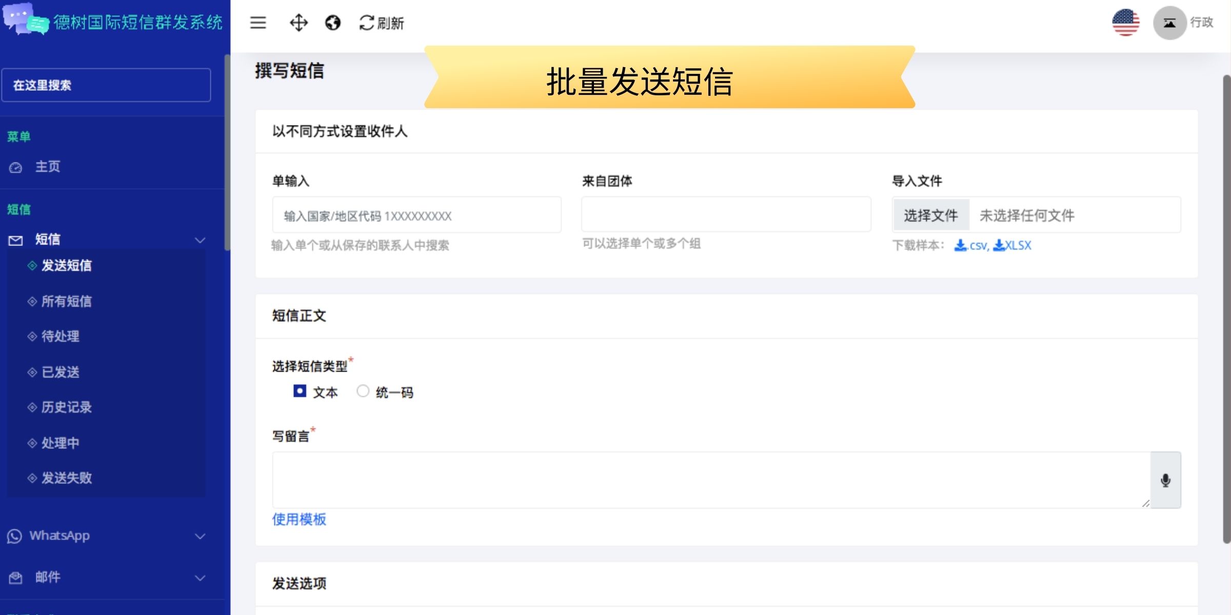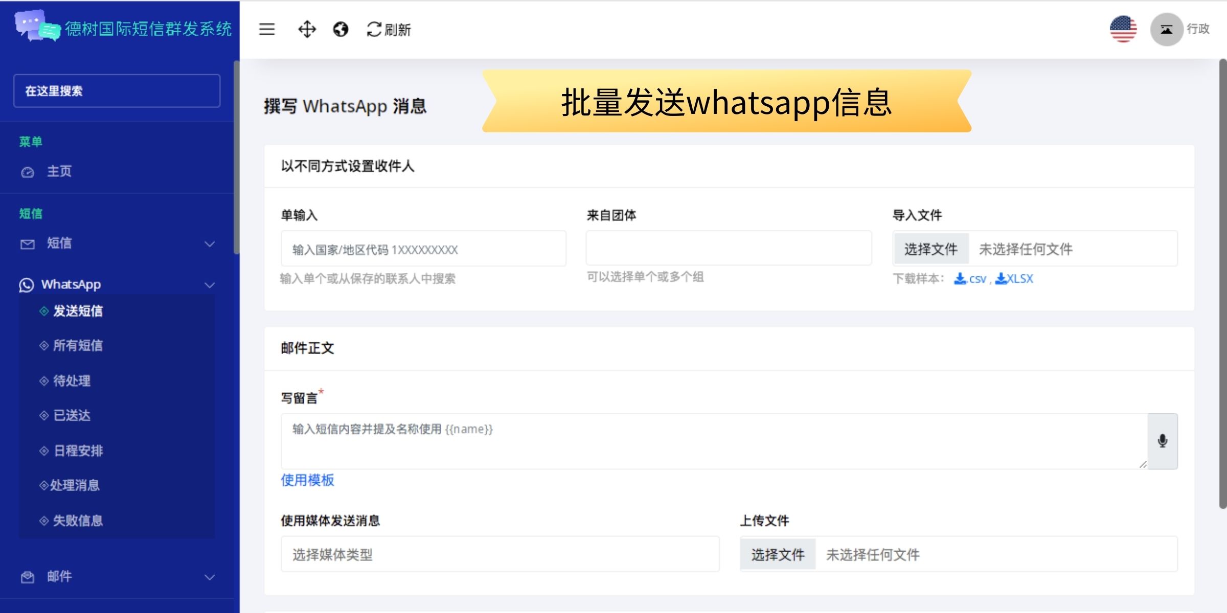 国际版短信群发 邮件群发 whatsapp群发SAAS系统/支持106短信