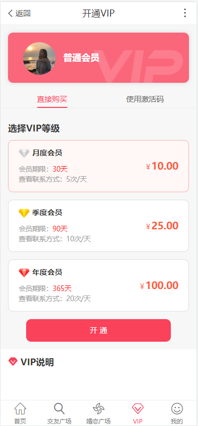 1、会员开通VIP收费;