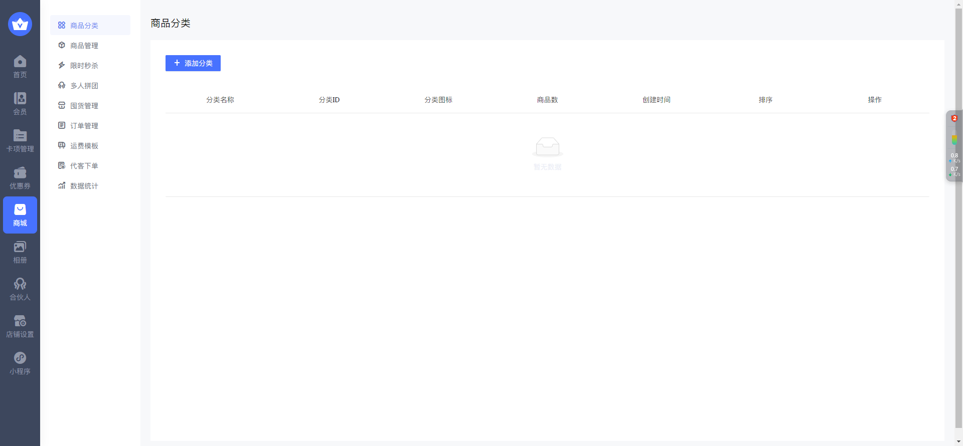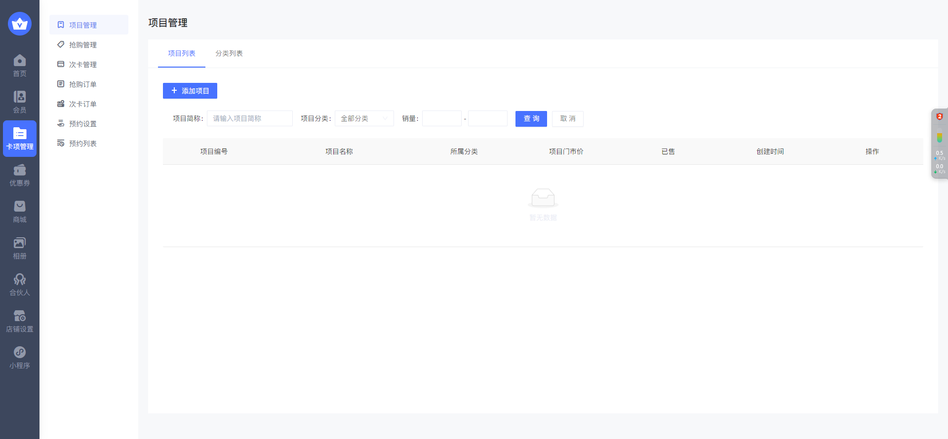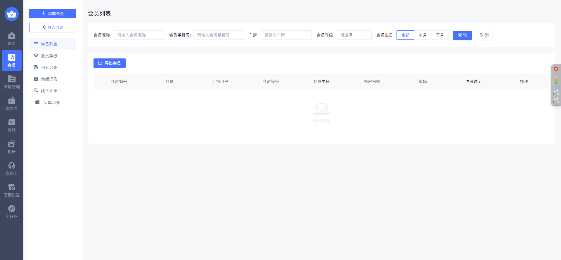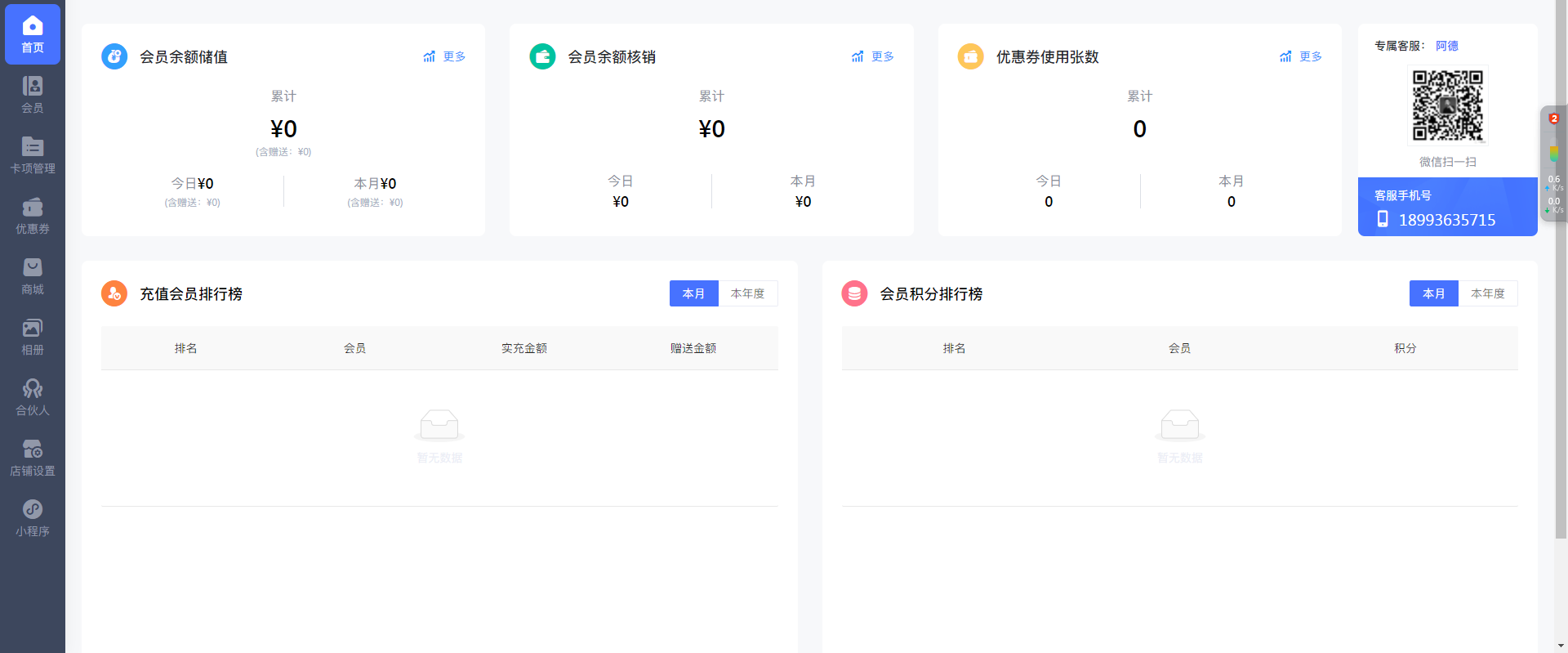 会员 卡项管理 优惠卷 商城 拼团 秒杀 相册 合伙人分销 短信消息